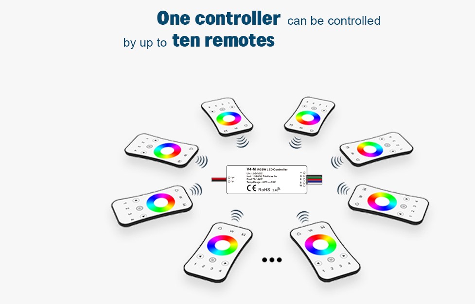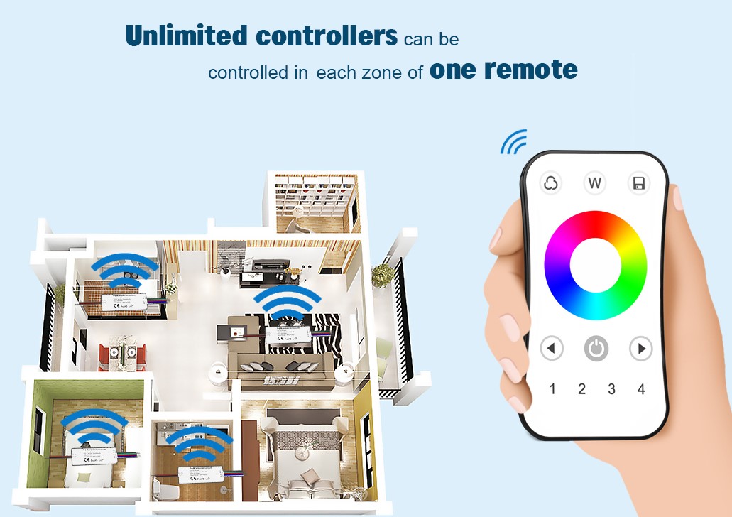 Styr 12V, 24V, 230V og dimming, CCT, RGB - alt med samme fjernkontroll.