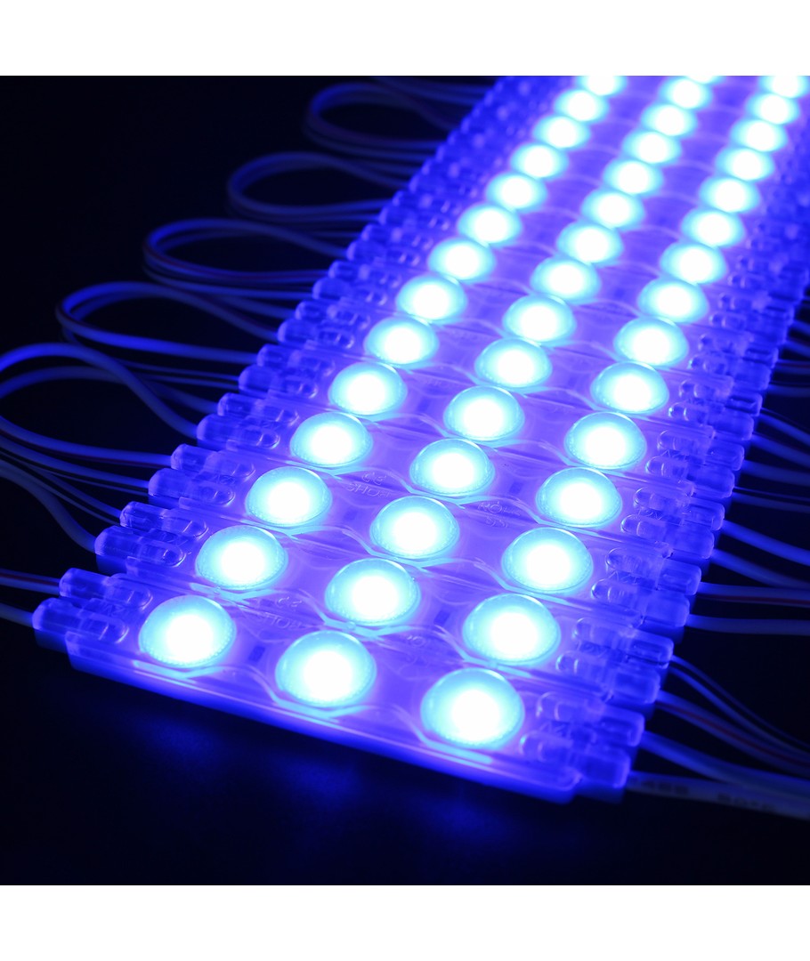 Våre blå LED-moduler er utformet for å gi den perfekte belysningsløsningen for både skilt og spesialløsninger. Denne modulen tilbyr pålitelig ytelse og høy kvalitet, og er ideell for både innendørs og utendørs bruk.