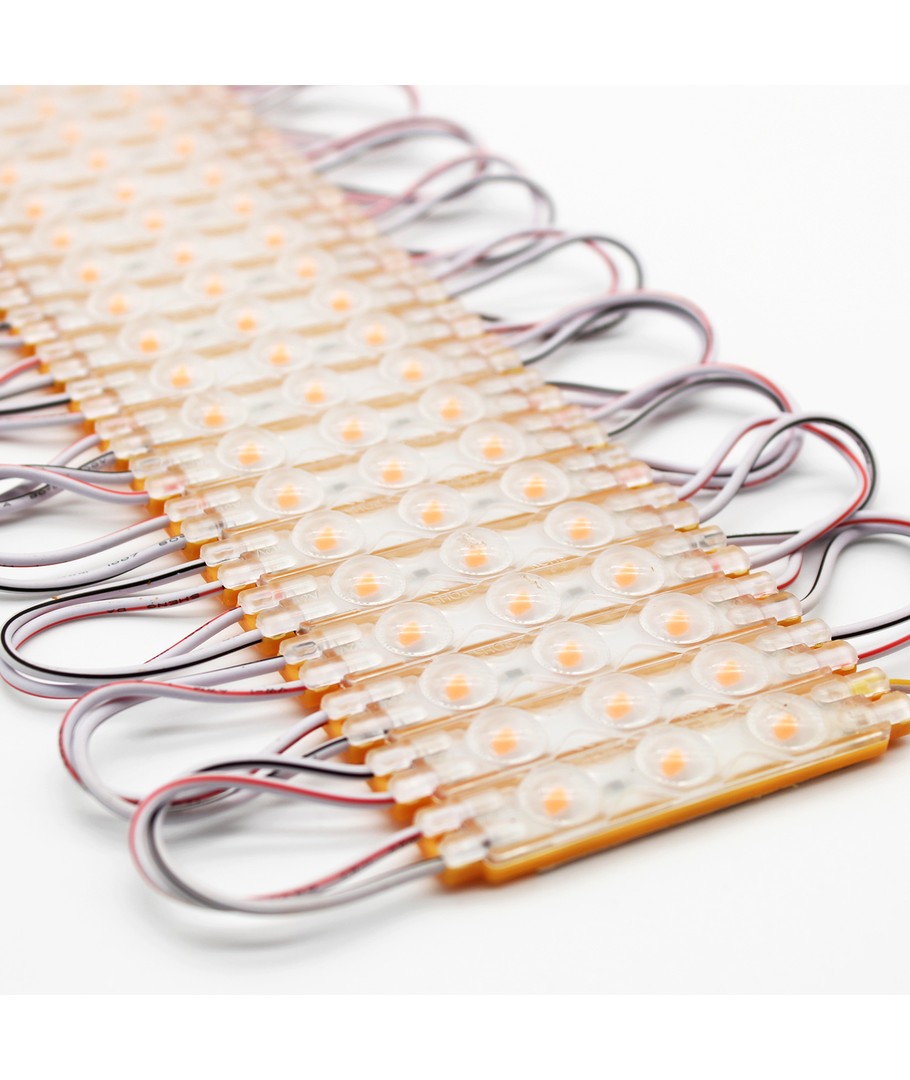Denne LED-modulen er designet for de som trenger pålitelig og fleksibel belysning for skilt og spesialløsninger. Med sine 1,1W per modul gir den et sterkt og jevnt lys, samtidig som den er energieffektiv. En av de mest attraktive funksjonene er den høye spredningsvinkelen på 170 grader som sikrer en jevn fordeling av lyset, noe som er avgjørende for å unngå skygger og ujevnheter.