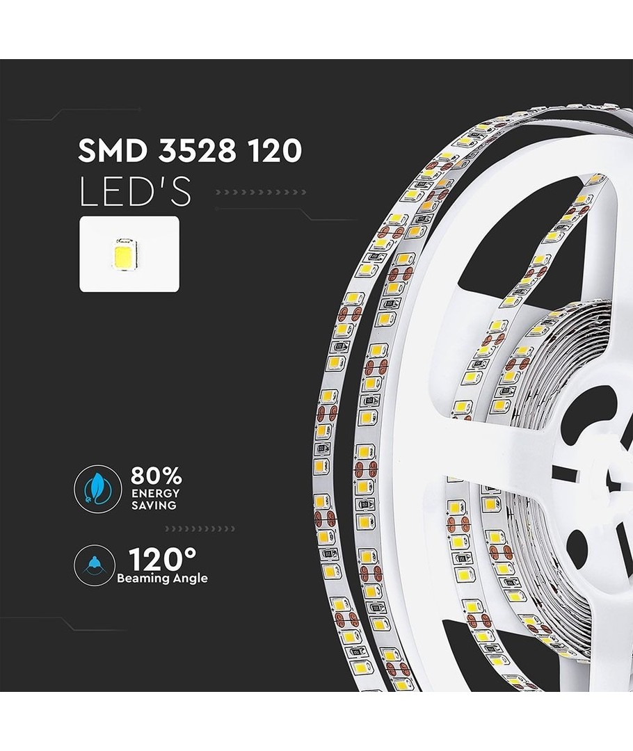 LED-stripen har en effekt på 8W/meter og gir en imponerende lysstyrke på 800 lumen/meter. Den har en høy lysspredning på 120 grader, som gir en jevn og effektiv fordeling av lyset. LED-stripen leverer en RA-verdi på 80-85, noe som gir en høy lyskvalitet og sikrer et naturlig lys som nydelig fremhever alle farger.