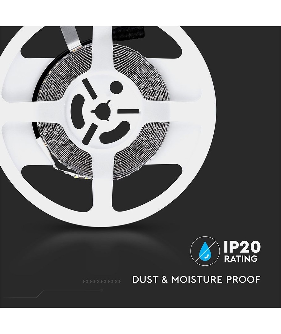 Merk at denne LED-stripen må kobles til en 12V DC forsyning. Den kan enkelt dimmes, noe som gir deg full kontroll over lysstyrken etter behov. Med en IP20-klassifisering er denne stripen ikke vannbestandig, og bør derfor kun brukes i tørre omgivelser innendørs.
