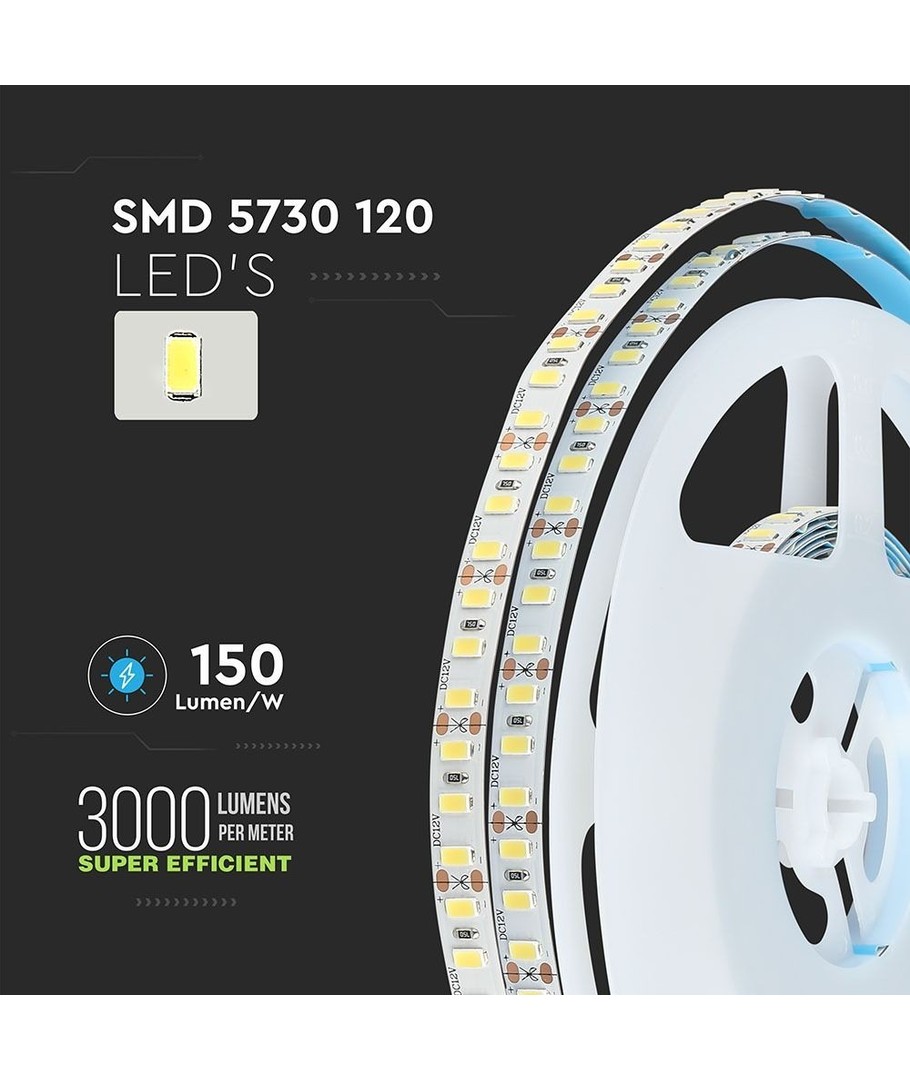 Med en lysstyrke på 2000 lumen per meter og en lysspredning på 120 grader, gir denne LED-stripen en jevn og omfattende fordeling av lys. Dette gjør den ideell for mange forskjellige bruksområder, fra hjemmebelysning til profesjonelle miljøer.