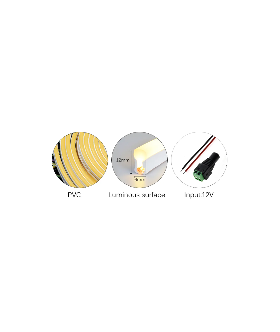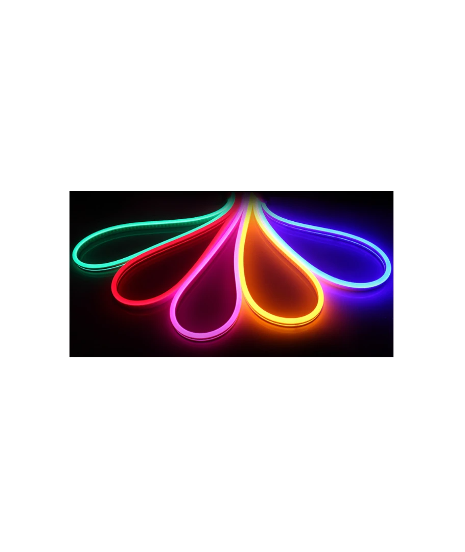 Den allsidige Neon Flex LED-stripen er perfekt for å skape en stemningsfull belysning i hjemmet, i hagen eller til kommersielle oppsett. Med sin høye lysstyrke og brede lysspredning vil den gi en fantastisk atmosfære uansett hvor den brukes. Husk at samtidig som produktet er vannbestandig, bør det ikke være under vann i lengre perioder.