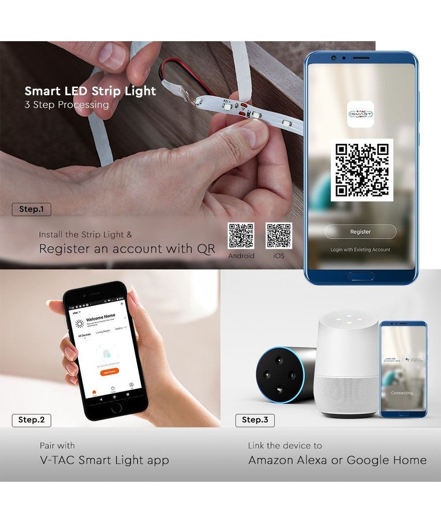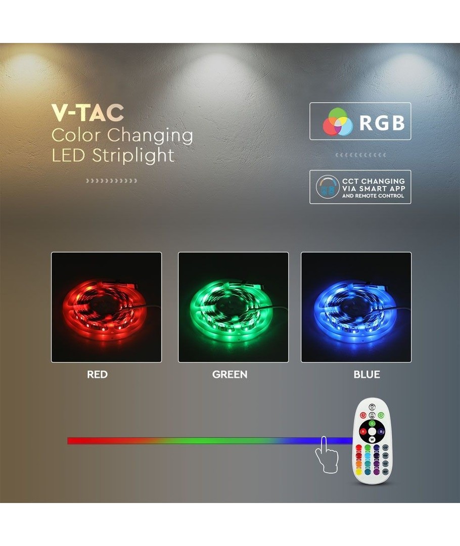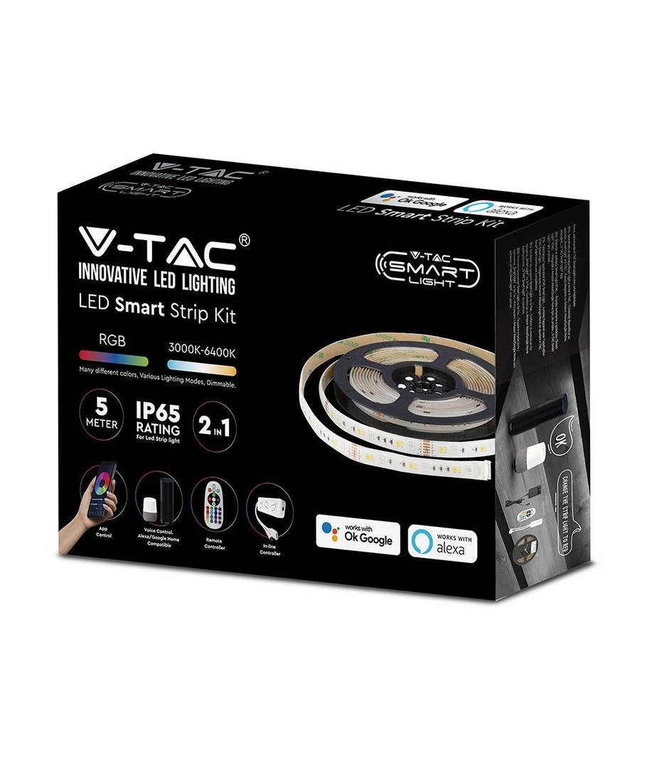 V-Tac 4W/m RGB+CCT LED stripesett er det perfekte valget for å skape atmosfærisk og fleksibel belysning. Dette settet inneholder alt du trenger for å komme i gang med å skape en unik atmosfære i hjemmet eller bedriften.