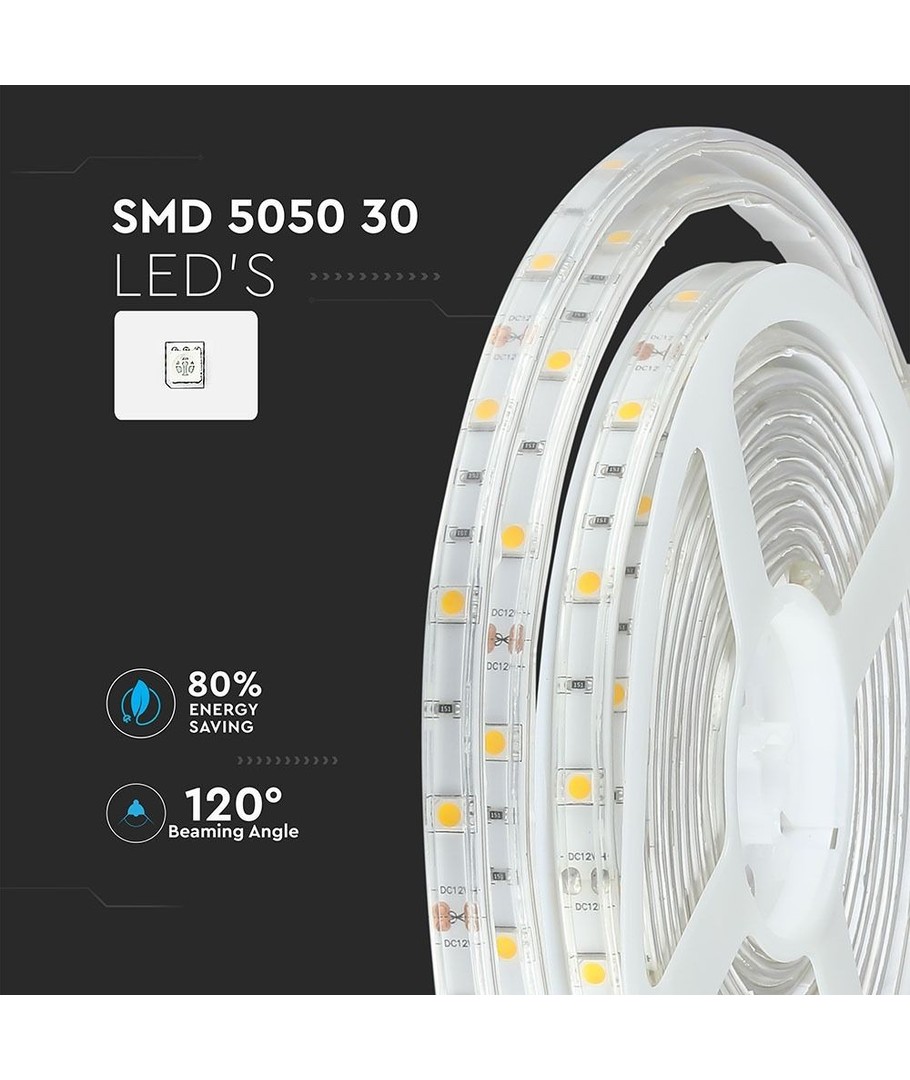 LED-stripen er ideell for å fremheve arkitektoniske detaljer, belyse trapper eller gangveier, eller som stemningsbelysning i din stue eller hage. Med 30 LED-er per meter får du en stripe som er tett besatt med lyskilder, noe som gir et levende og engasjerende lysbilde.