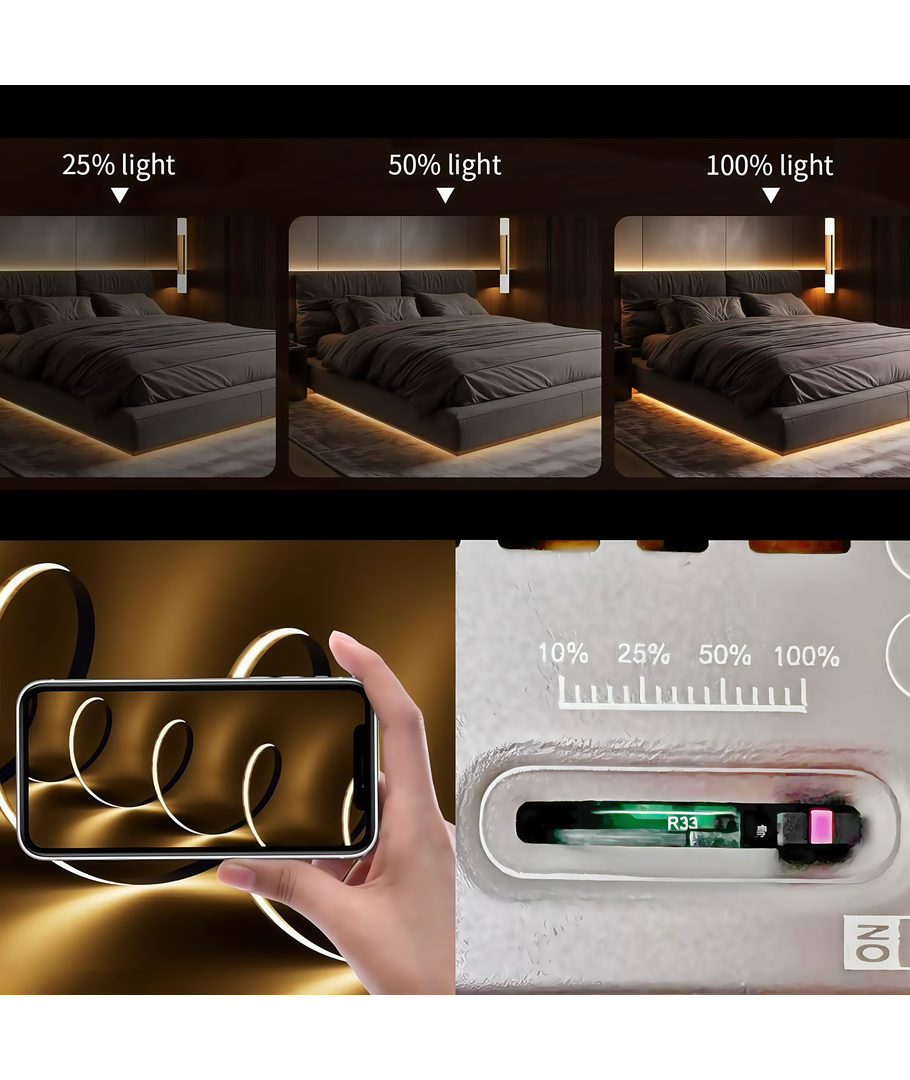 Dimmes direkte på strømforsyningen.