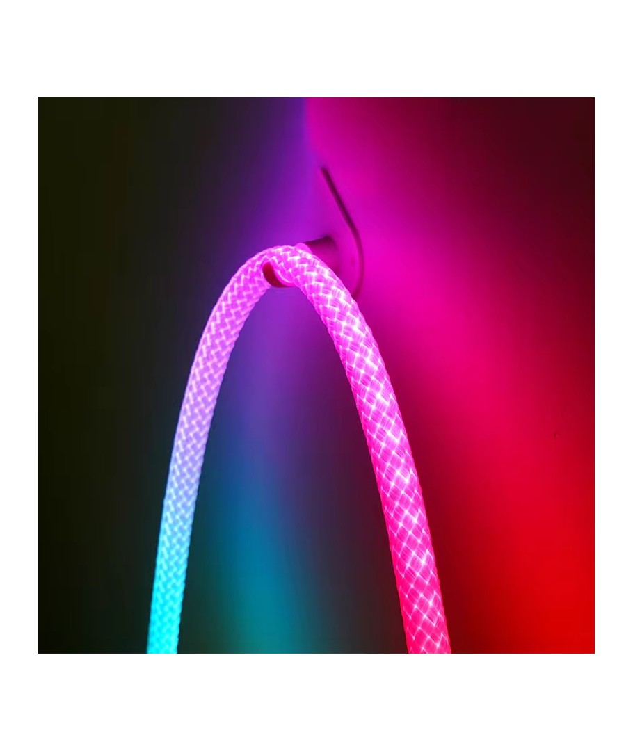 Opplev en verden av farger med vår 3W/m RGBIC Neon Flex strip med vevd tau - en 5 meter RGBIC neon flex, som bringer lys og liv til ethvert rom med sitt dynamiske fargespill og fleksible design.