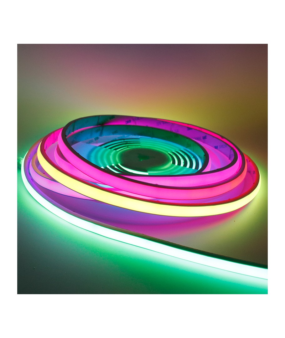 Forvandle hjemmet ditt med vår 5m Neon RGBIC COB LED-stripe. Denne stripebelysningen gir liv til ethvert rom og skaper en dynamisk atmosfære med sin RGBIC-teknologi og 720 LED per meter. Perfekt for både innendørs og utendørs bruk, med sin IP67 vannbestandighet.