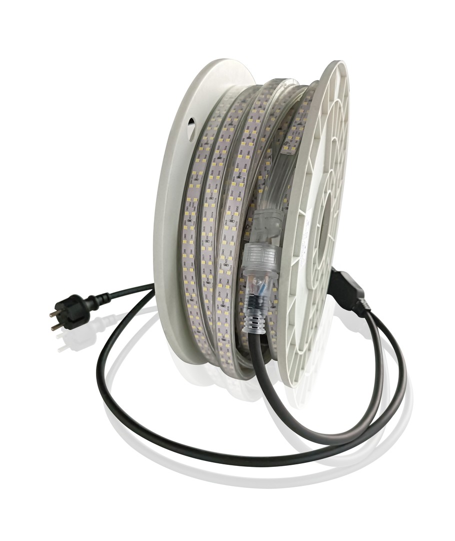 LED-stripen må kobles til en 230V forsyning og er perfekt for bruk i industrielle eller kommersielle settinger der høy kvalitet og pålitelighet er nødvendig.