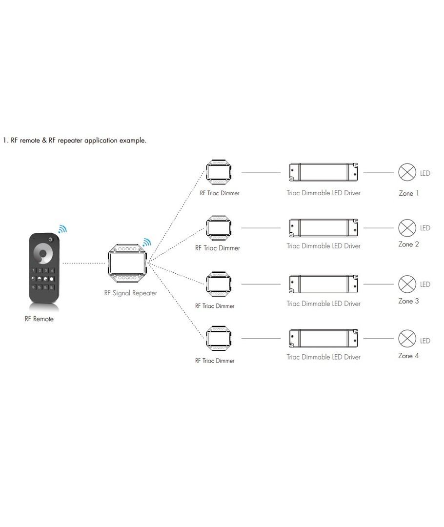 12V DC, 12, 5A, RF, push-dim, 4 kanaler