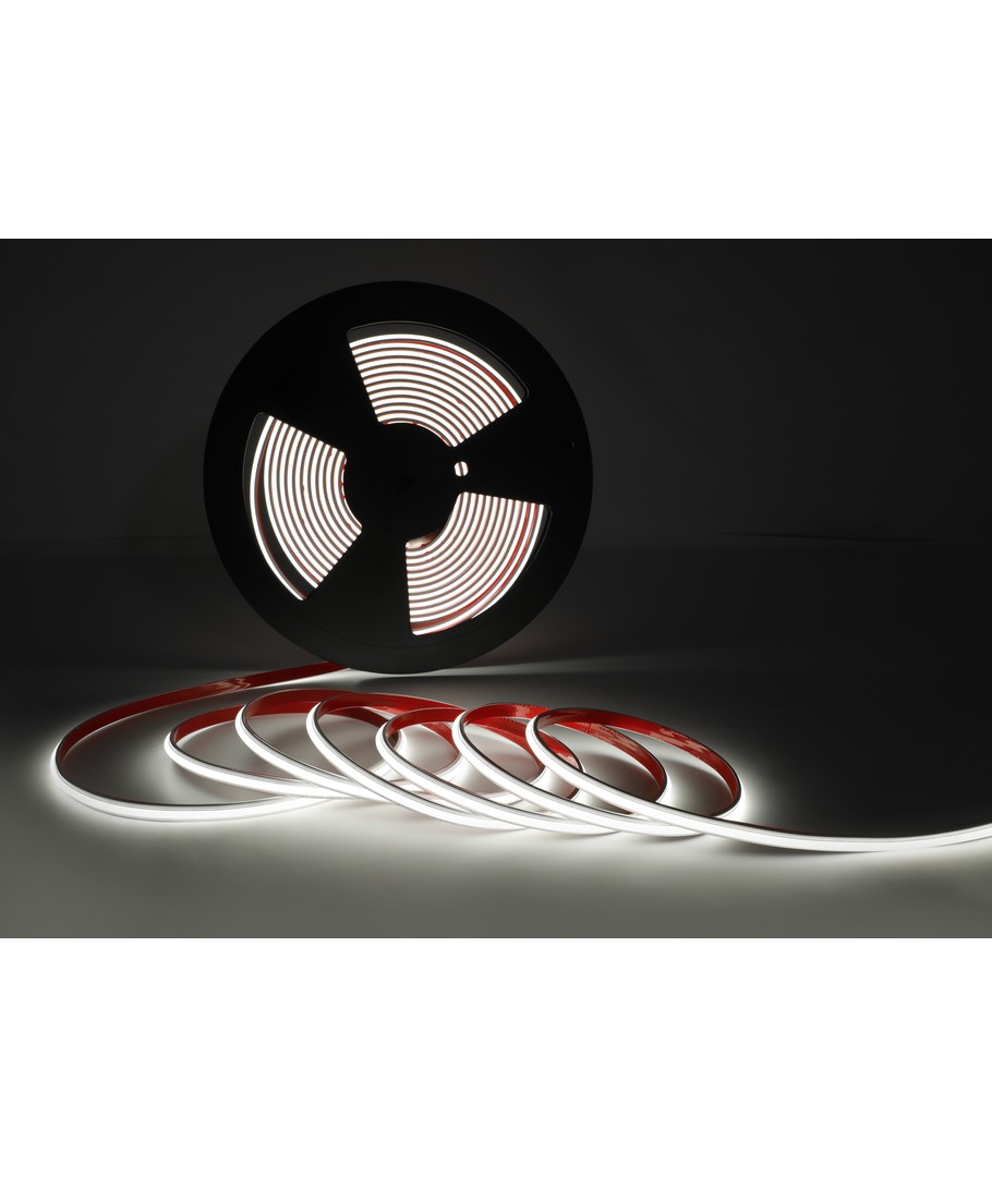 Med 15W per meter, tilbyr denne COB-LED stripen en kraftig og jevn lysytelse. Lysstripen har 240 LED per meter og leverer en lysstyrke på 1400 lumen per meter, noe som gir en imponerende lysdekningsvinkel på 120 grader.