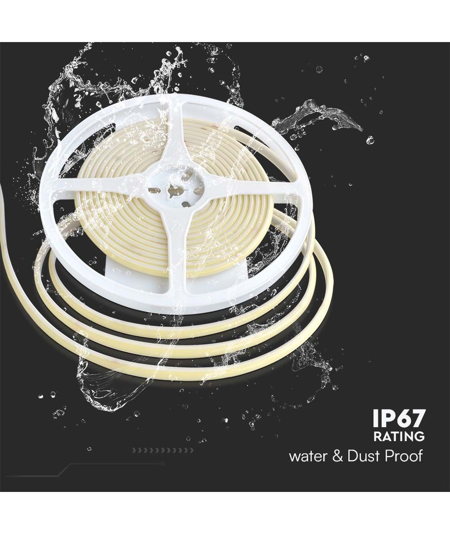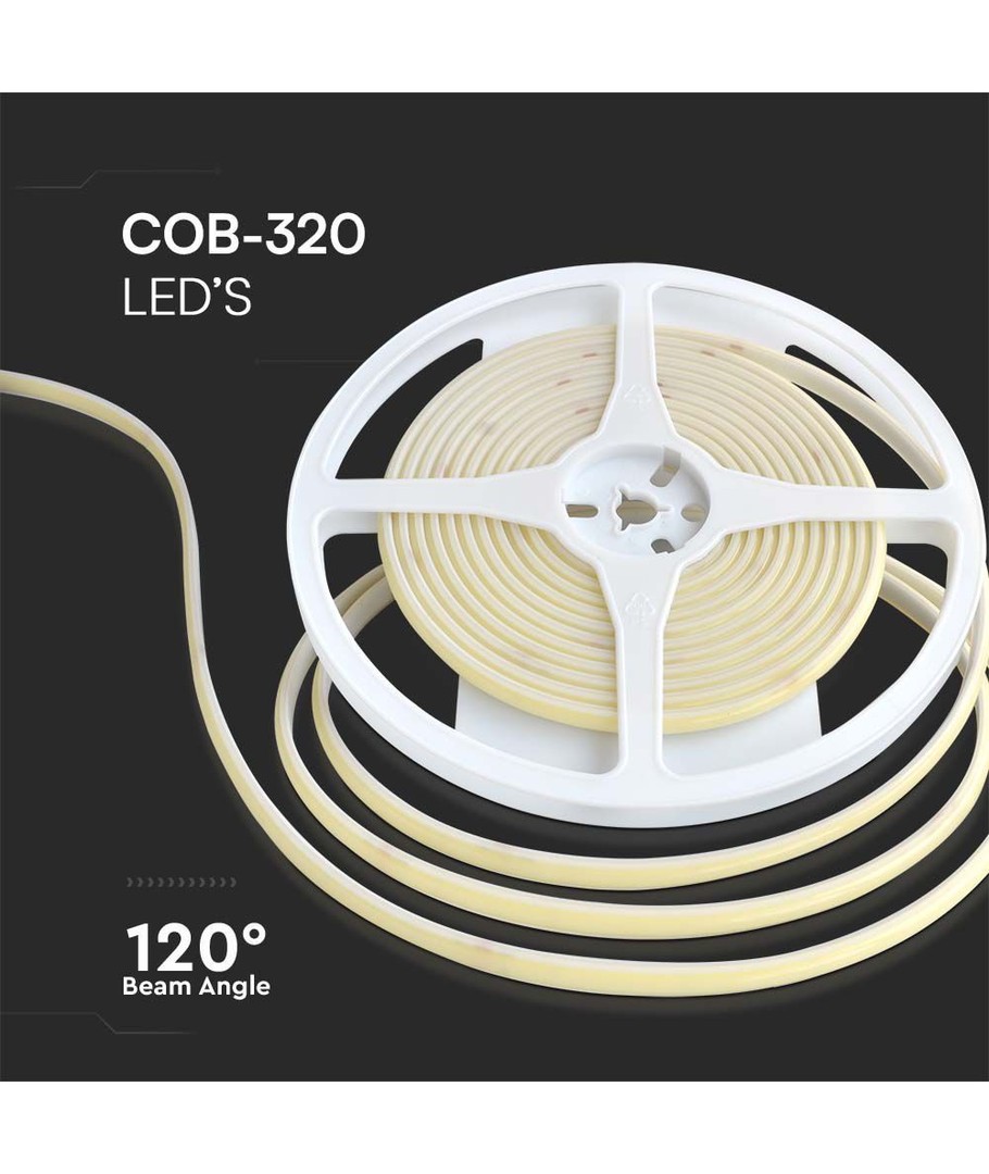 V-Tac 10W/m COB-LED strip er designet for å levere optimal lysstyrke og kvalitet, med 320 LED per meter som sikrer en jevn lysdistribusjon. Denne LED-stripen er ideell for både dekorative og funksjonelle lysinstallasjoner.