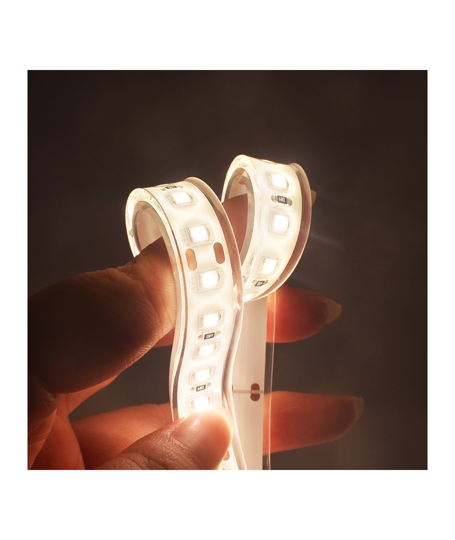 LED stripen krever en 24V DC forsyning og kan dimmes, noe som gir deg full kontroll over lysstyrken for ulike stemninger og behov.