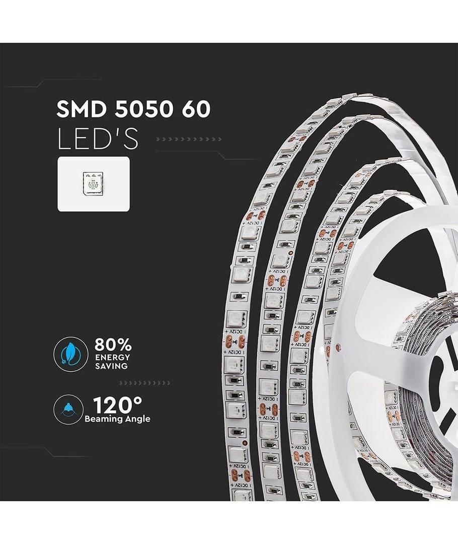 V-Tac LED stripen er designet for innendørs bruk med beskyttelsesgraden IP20. Det betyr at den ikke er vannbestandig, og bør derfor plasseres i tørrere omgivelser hvor optimal belysning ønskes. Denne LED stripen opererer på 24V og benytter 9W per meter, noe som bidrar til energieffektiv bruk uten å gå på kompromiss med lysstyrken.