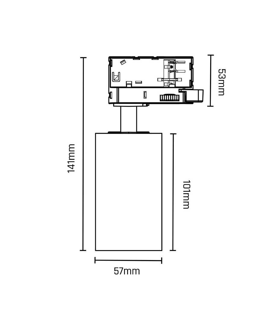 3-faset skinne, uten lyskilde, 250V, IP20, 60x101x141mm, hvit