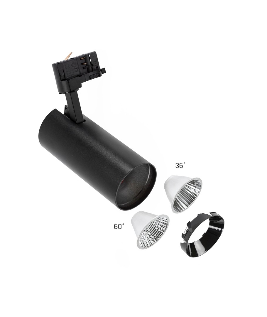 Det elegante svart designet gjør skinnespotten til en flott tillegg til ethvert moderne interiør. Det fleksible monteringssystemet betyr at du enkelt kan justere lysretningen for å belyse spesifikke områder etter behov. Med en lysvinkel på 36 eller 60 grader, kan du få enten et fokusert eller bredt lysbilde, perfekt for å fremheve detaljer eller gi generell rombelysning.