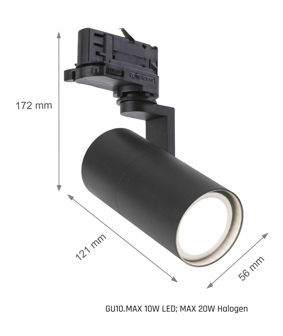 For 3-faset skinner, 36W, 23,5 cm, svart