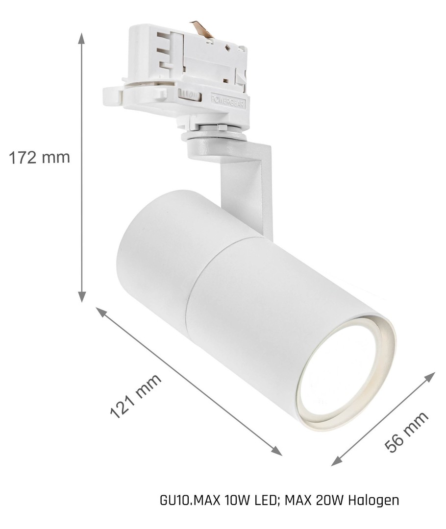 3-faset skinne, uten lyskilde, 250V, IP20, 60x101x141mm, hvit