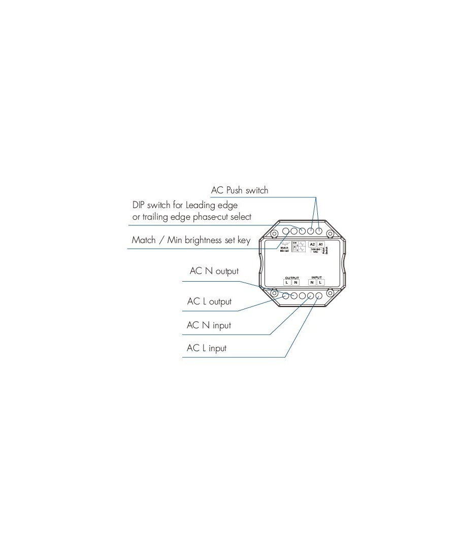 Push-dim, 12V (180W), 24V (360W), avlastning i begge ender