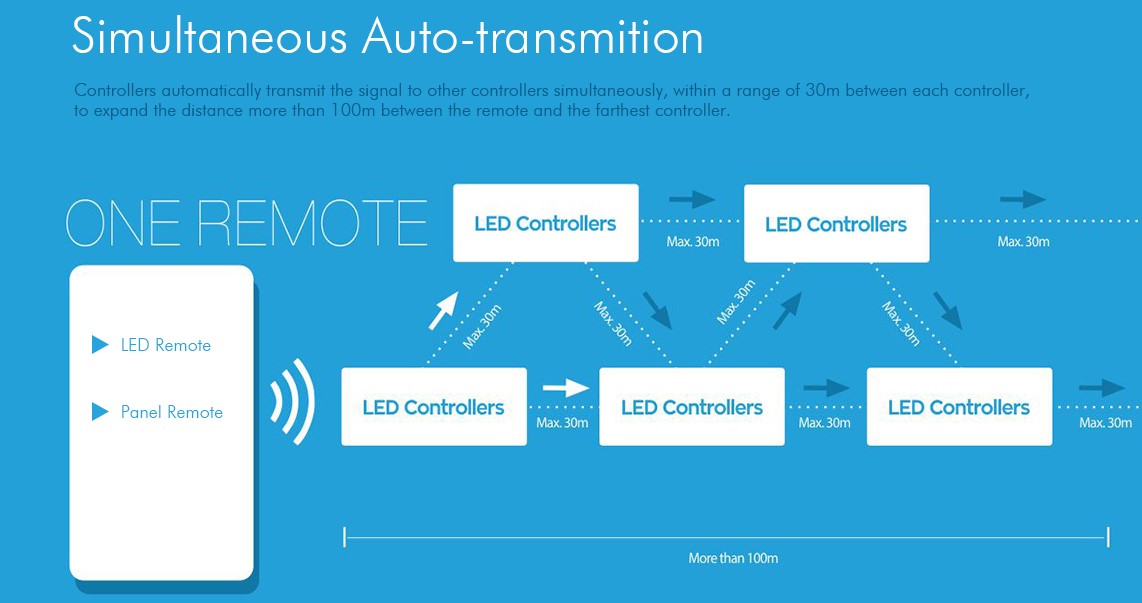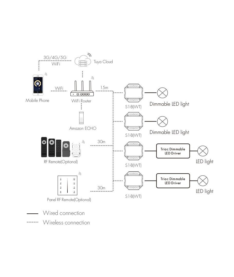 Styr 12V, 24V, 230V og dimming, CCT, RGB - alt med samme fjernkontroll.