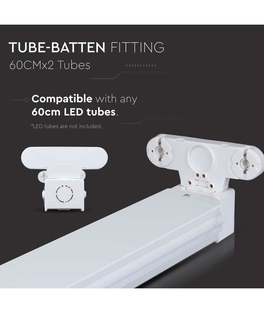 Åpen LED-armatur klar til montering av T8 LED rør.