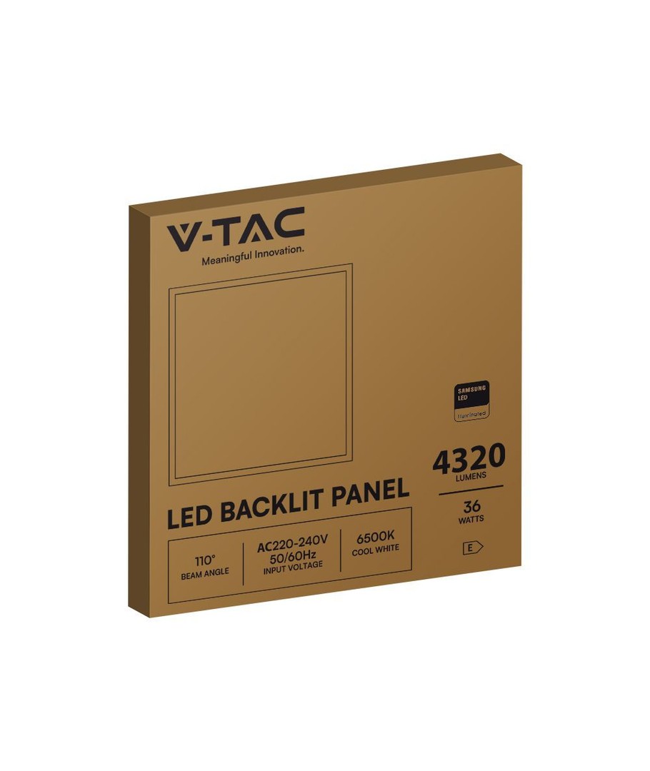 Fin 60 x 60 bakbelyst LED-panel av høyeste kvalitet med hvit kant.