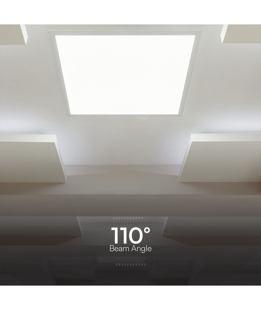 Bruker er velkommen til å koble panelet til en 230V forsyning. Med en lysspredning på 110 grader, sikrer produktet en jevn fordeling av lys, noe som er ideelt for ethvert arbeidsmiljø.