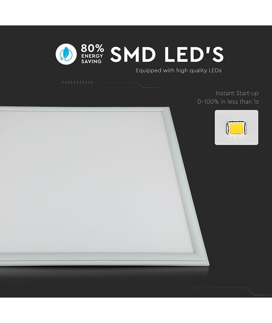 Opplev en lysstyrke på 4320 lumen, med en imponerende lysspredning på 110 grader som sikrer en jevn fordeling av lyset. Med en RA-verdi på 80-85, garanterer dette panelet god lyskvalitet som fremhever farger på en genuin måte, nok for de fleste behov.