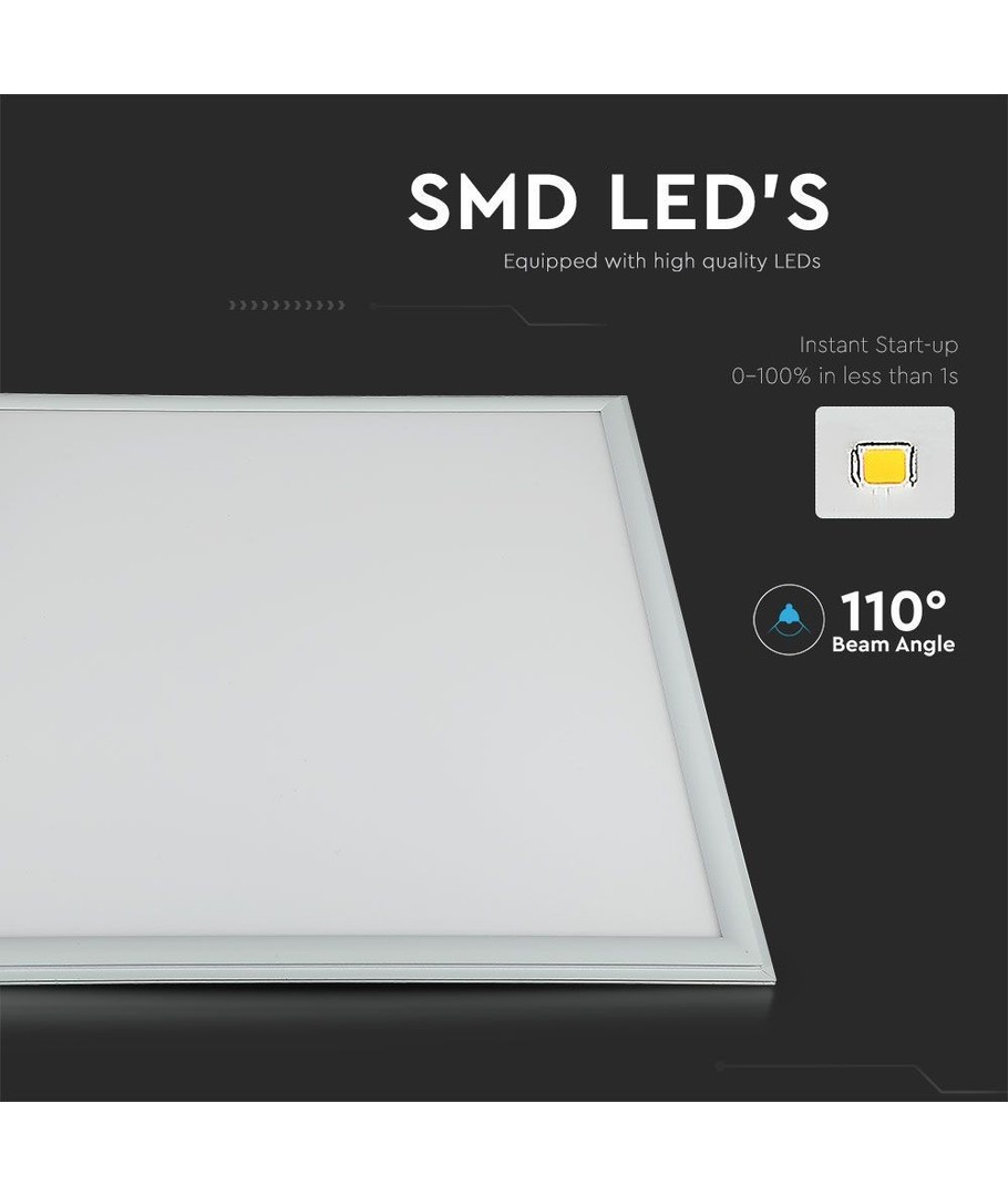 Panelet tilbyr høy lyskvalitet med en RA-verdi i området 80-85, noe som sikrer et naturlig lys som vakkert formidler alle farger. Dette gjør V-Tac LED-panelet ideelt for de fleste belysningsbehov.