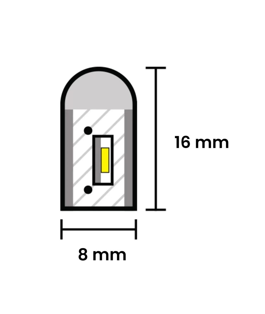 Inkl. endestykke, til 230V 8x16 Neon flex