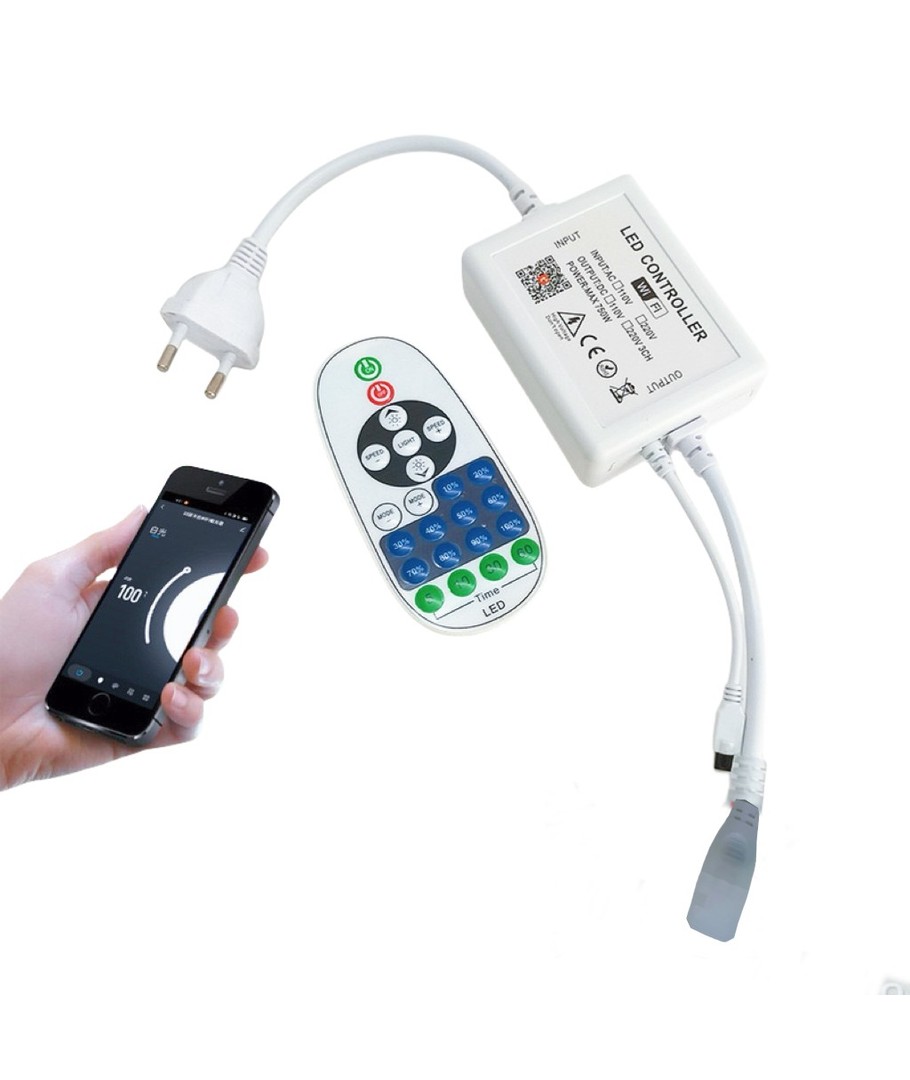 Gjør det mulig å styre 230V CLIP-ON 8x16 Neon flex LED strip via smarttelefon.