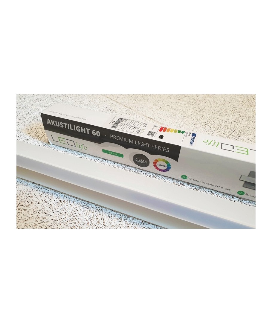 Akustilight CCT 90 cm fra LEDlife, perfekt til tak med trebetong (eks. Troldtekt og Fibrotech) og gips.