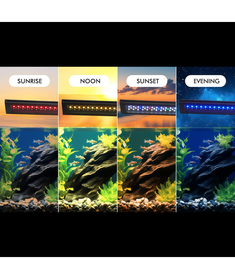 Den integrerte RGBW-teknologien tilbyr en bred palett av fargetoner, noe som gir deg muligheten til å skape den rette atmosfæren i akvariet ditt. Utnytt timerfunksjonen for å skapa naturlige lysintervaller som etterligner solens syklus, og gi plantene og dyrene en mer naturtro opplevelse.