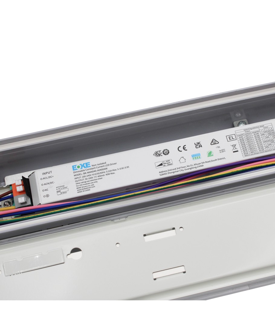 Lampen må kobles til en 230V forsyning og er 0/1-10V dimbar, noe som gir deg fleksibilitet til å justere lysstyrken etter behov. Med LED av høyeste kvalitet sørger armaturet for opptil 30.000 timer med sikker drift og minimal lysstyrkereduksjon.