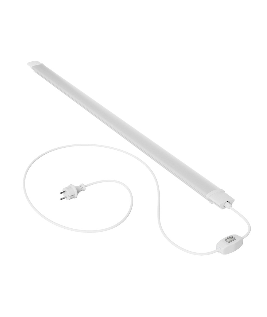 120cm LED armatur med formontert ledning med plugg og bryter – klar til bruk på få sekunder.