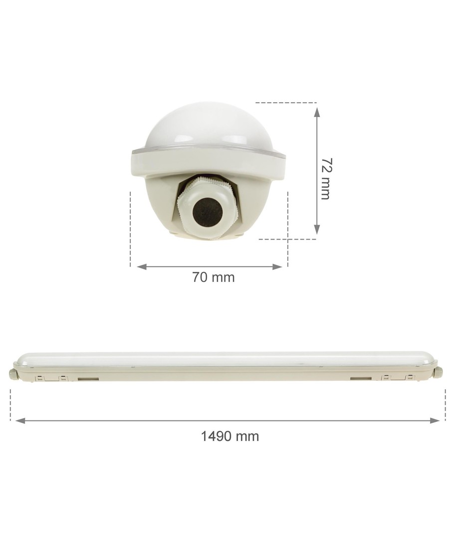160lm/W, 5000K, 150 cm, IP66, IK10, gjennomgangskobling, 230V