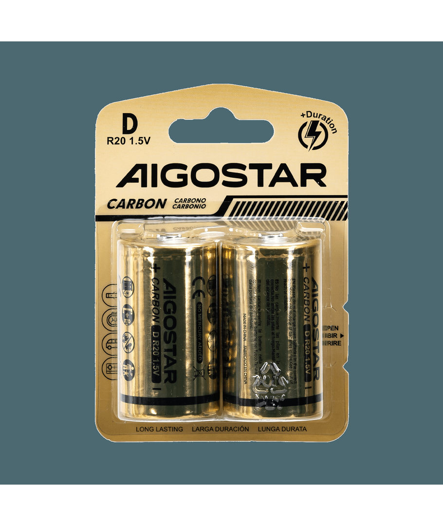 Få ekstra strøm til dine enheter med dette praktiske 2-pak kull-sink batterier med en spenning på 1,5V R20D.