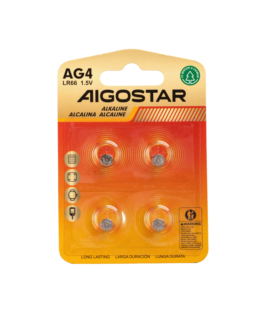 4 stk. Knappecellebatteri - AG4 LR66, 1.5V Utvid