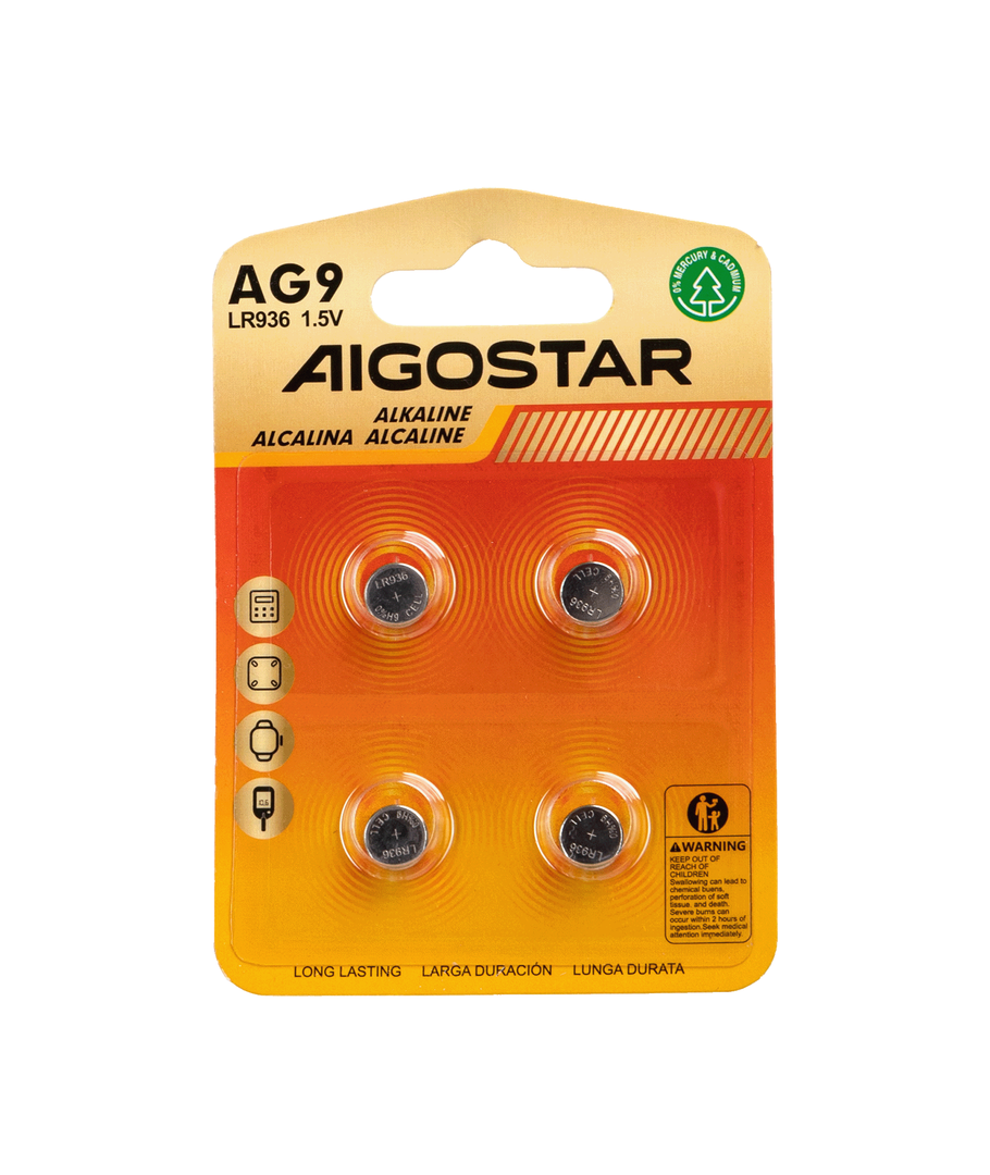 4 stk. Knappecellebatteri - AG9 LR936, 1,5V Utvid