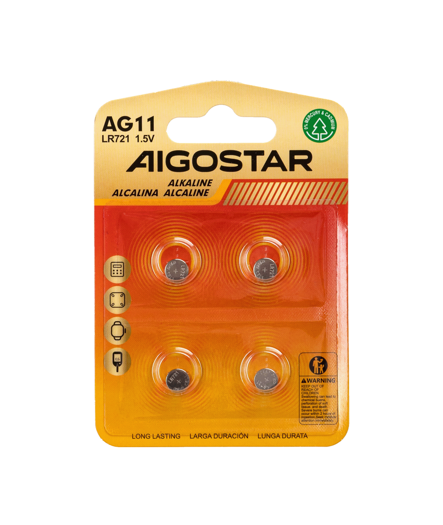 4 stk. Knappecellebatteri - AG11 LR721, 1,5V Utvid