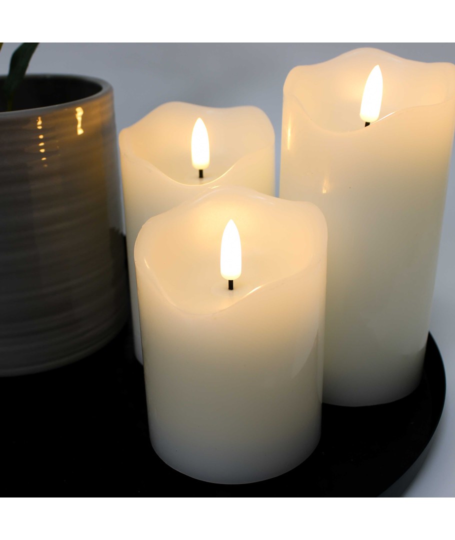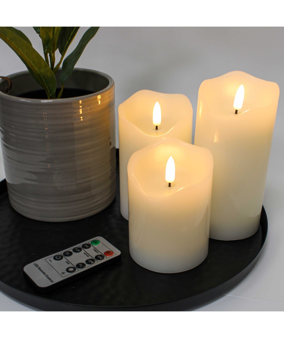 Opplev en magisk atmosfære i ditt hjem med vårt LED Blokklys sett, som kombinerer skjønnheten av ekte stearin med moderne teknologi for å skape en naturtro flammeeffekt.