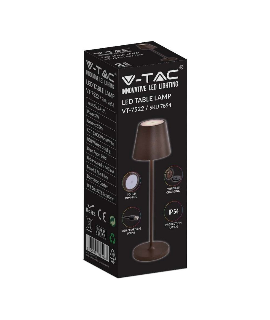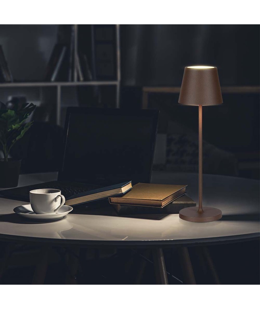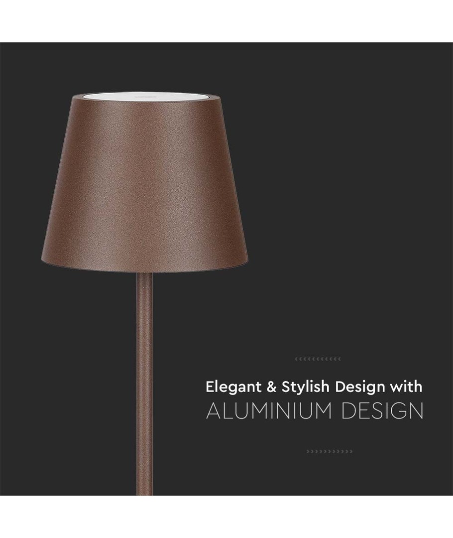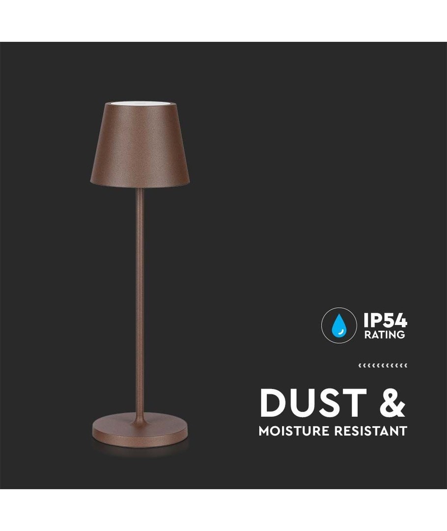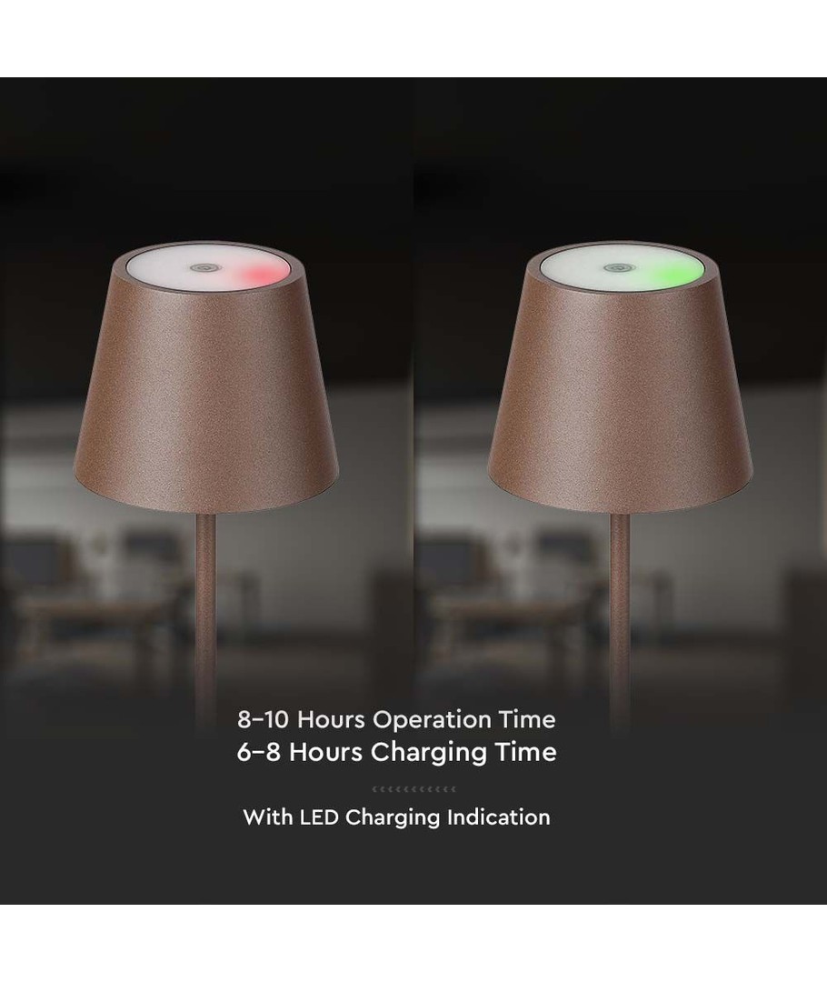 Opplev den perfekte belysningen med V-Tac's innovative oppladbare bordlampe i en elegant Corten finish. Den er ideell for både innendørs og utendørs bruk, takket være sin IP54-klassifisering som gir beskyttelse mot fuktighet og vannsprut. Denne lampen er ikke bare funksjonell, men også en stilfull tillegg til enhver setting.