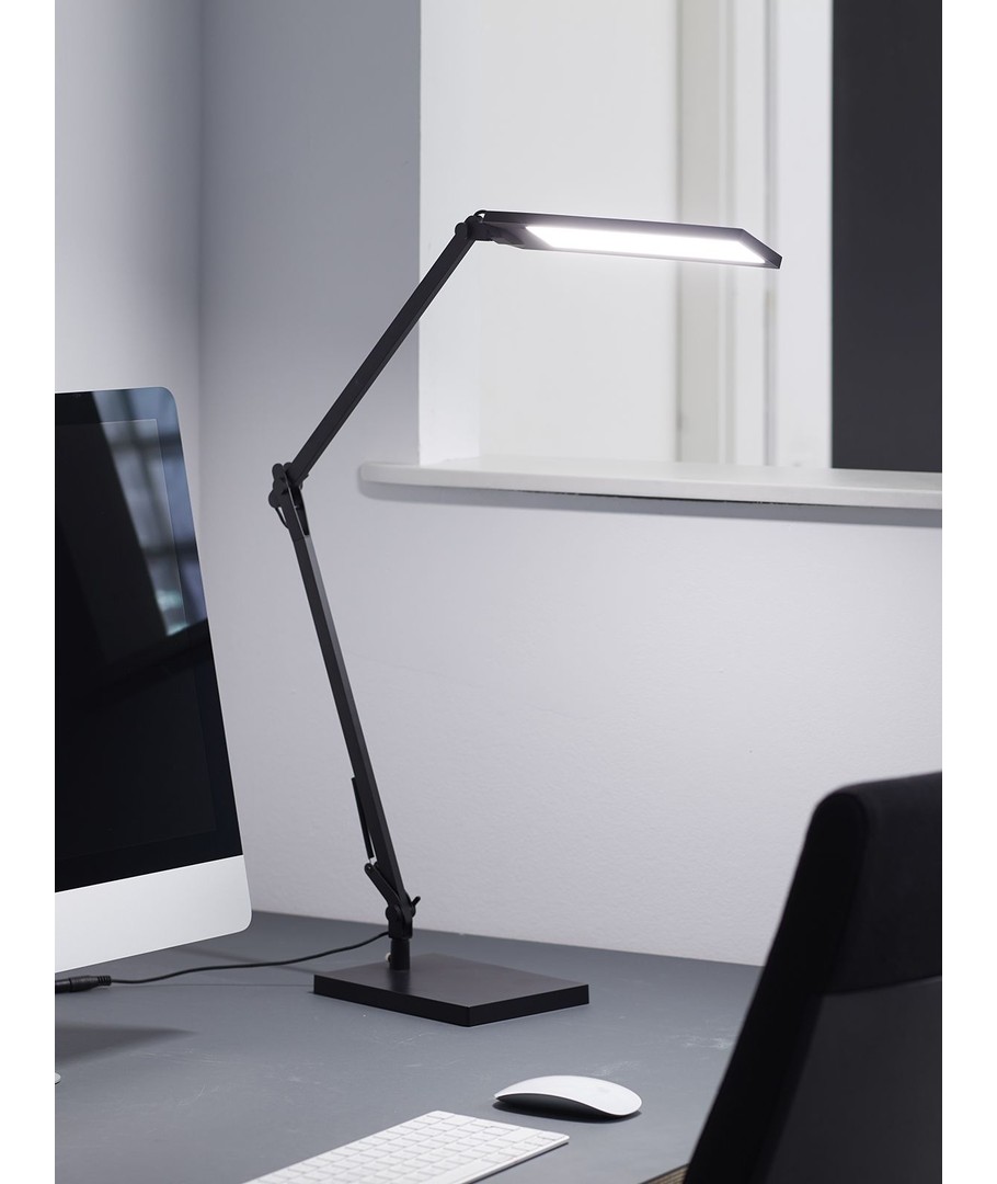 Lampen er dimbar via 3-trinns Touch og gir mulighet for å endre lyset fra 3000K og opp til 6500K - av/på-knappen sitter på det fleksible lampehodet.