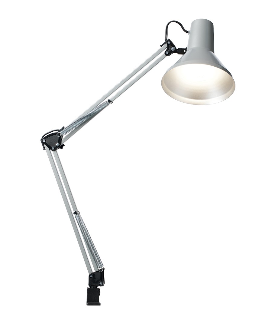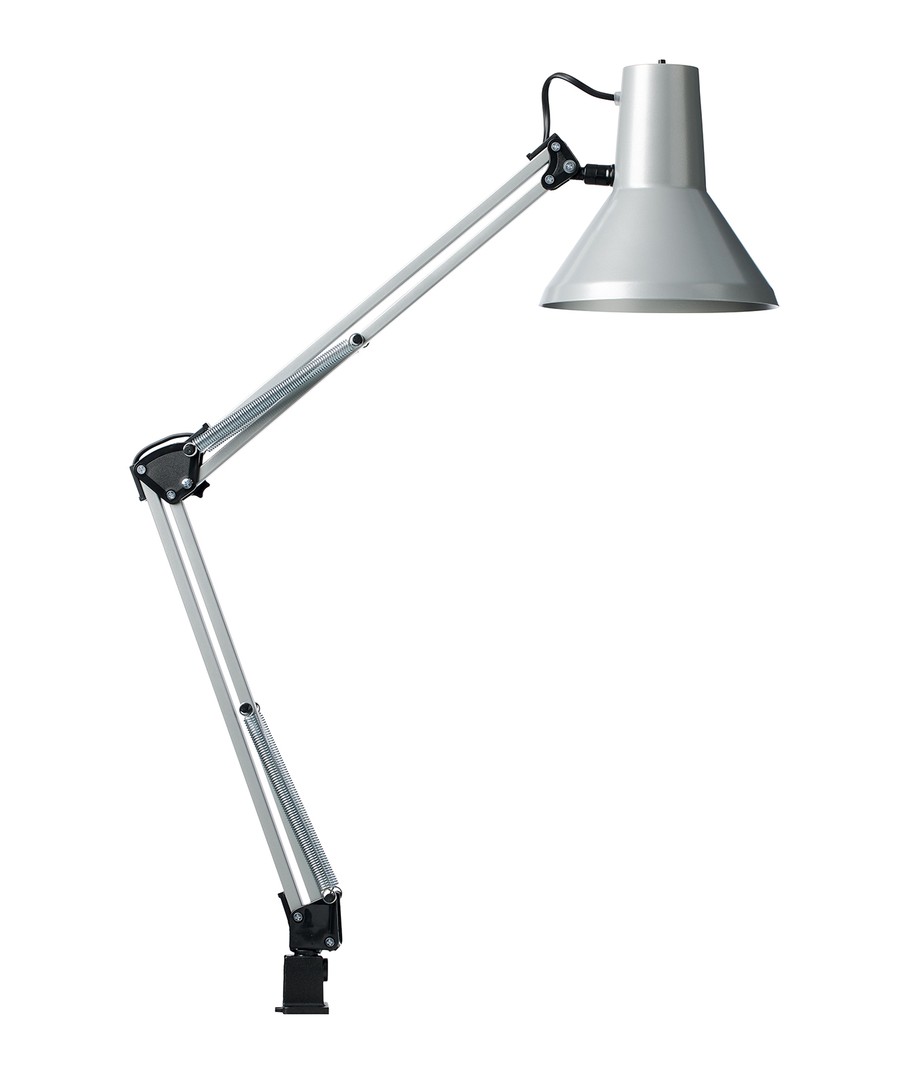 Jensen arkitektlampe i Silver fra Nielsen Light, er den originale, klassiske arkitektlampe med 4 kraftige fjærer og hode i et stykke metall. Lampen leveres inkludert bordklemme og veggfeste, så den er enkel å montere på skrivebordet eller på en vegg.