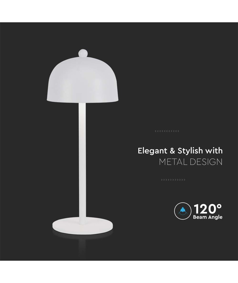 Opplev allsidigheten og bekvemmeligheten med V-Tac Oppladbar bordlampe 3i1, perfekt for enhver innendørs innredning.