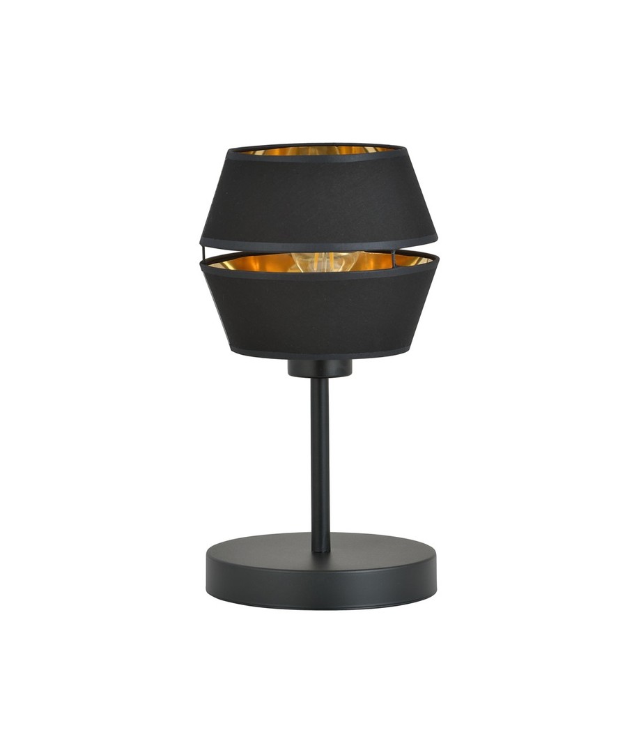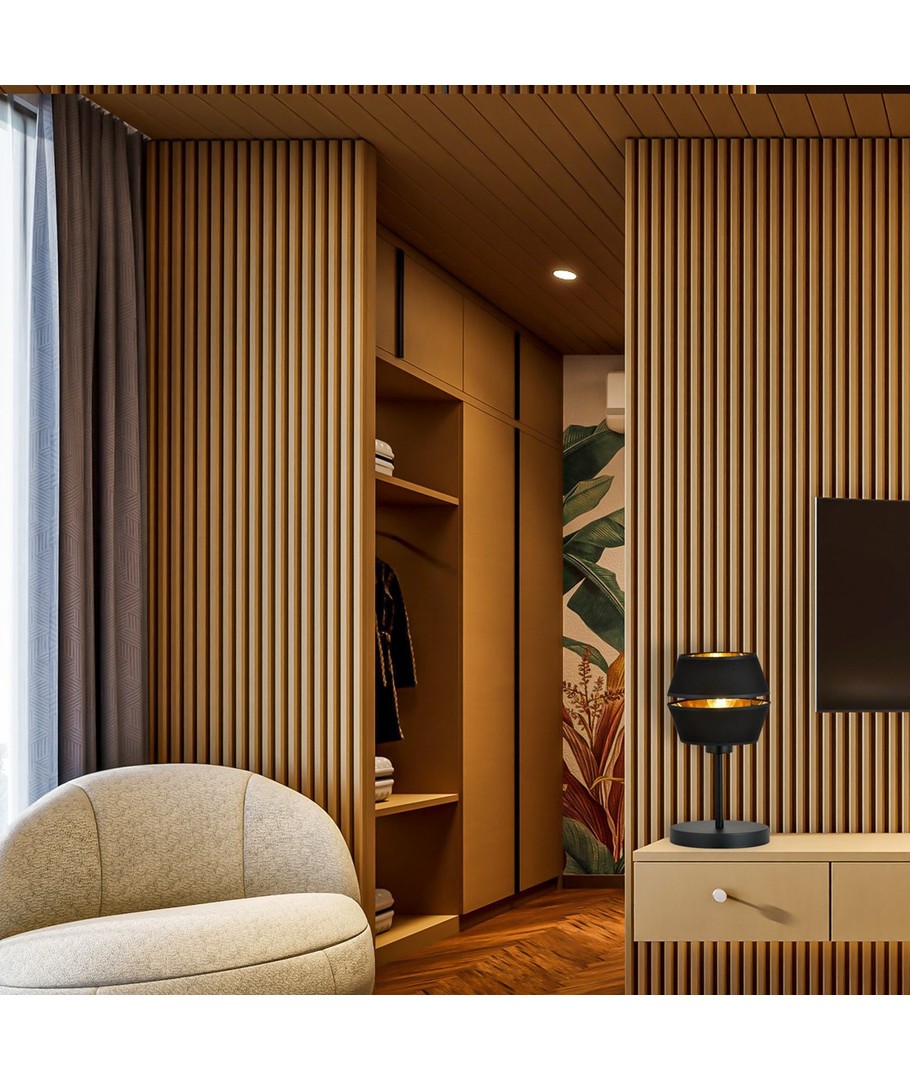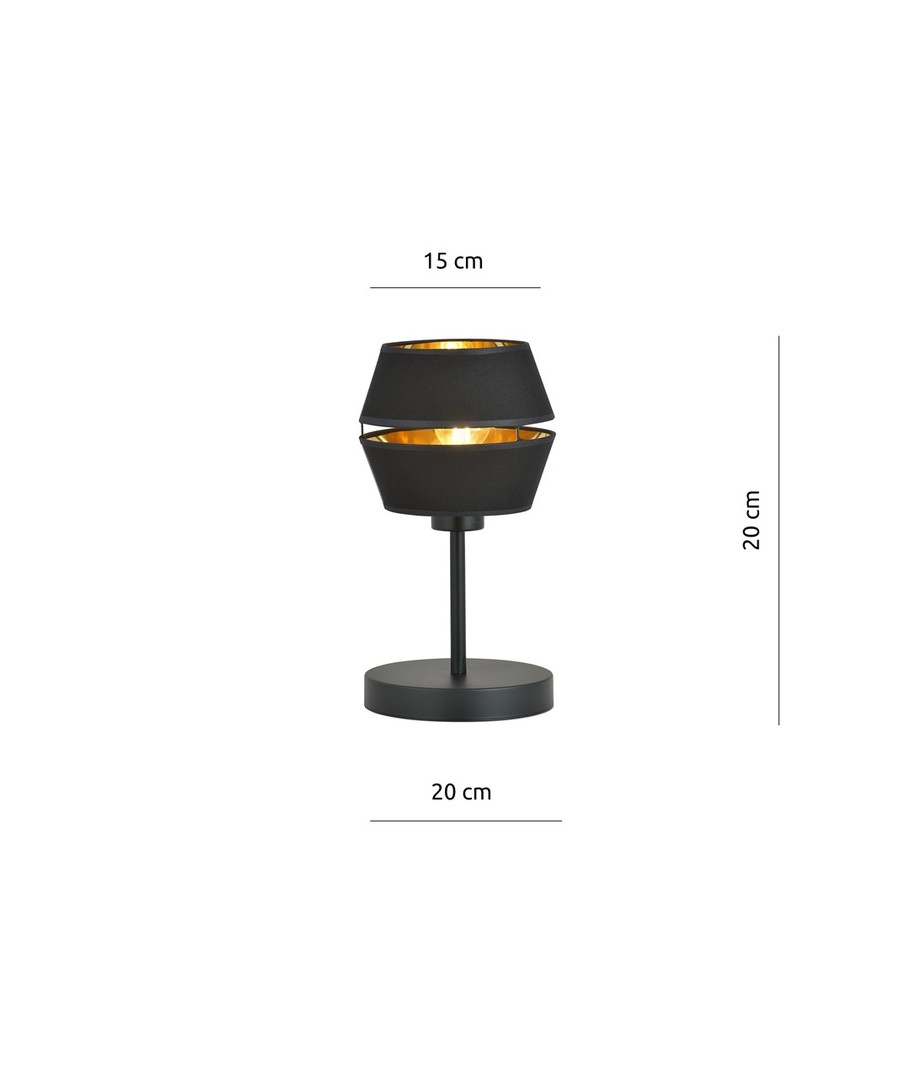 En moderne og elegant bordlampe, som gir et sofistikert preg til ethvert rom. Med sin stilrene sort og gull finish, passer denne lampen perfekt inn i både klassiske og moderne interiør.