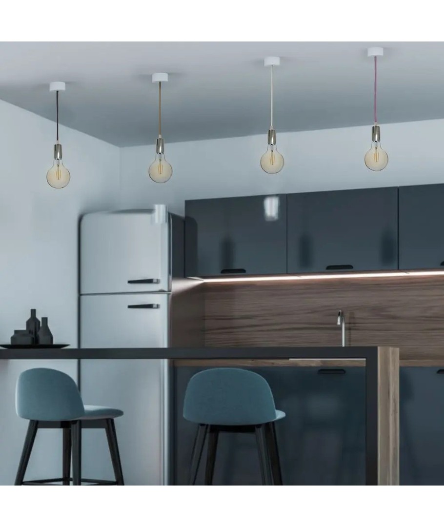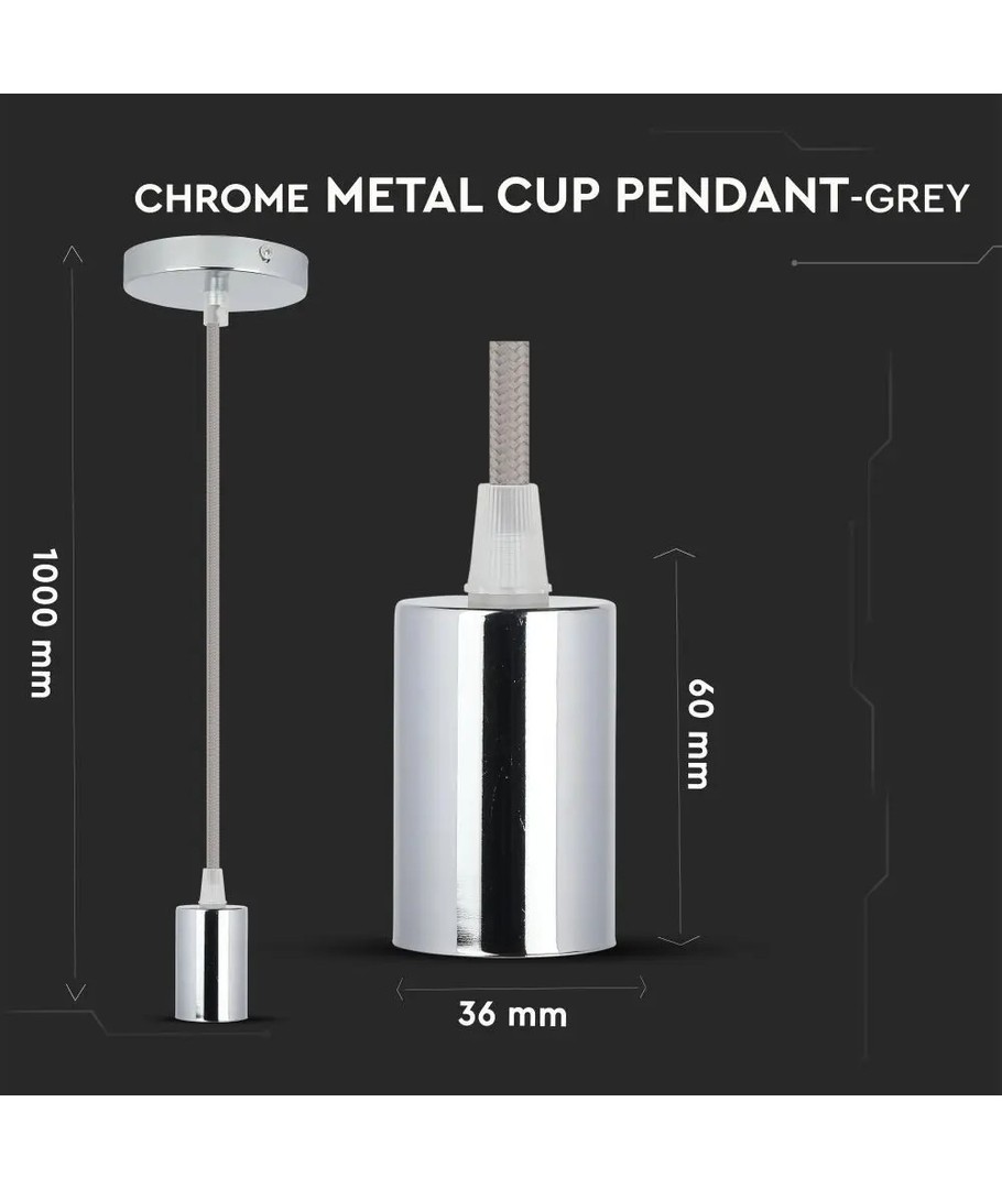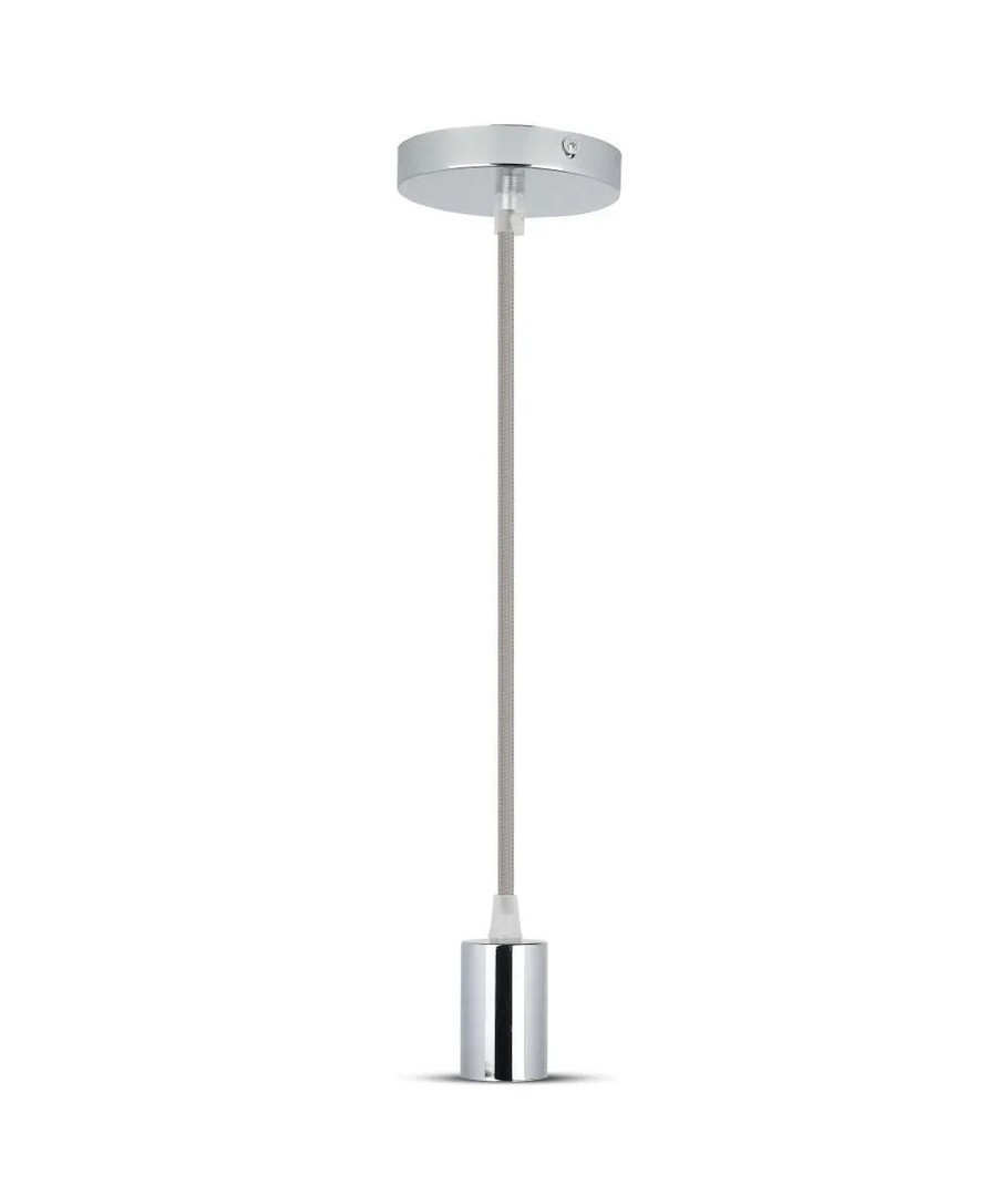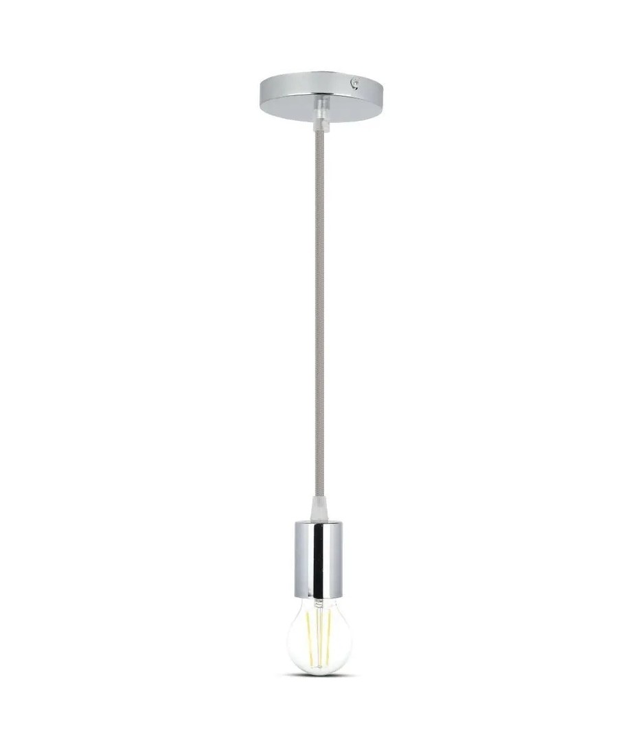 Fatningens minimalistiske design fremheves av grå ledning, som gir en diskret og ren utseende. Metallet i krom er ikke bare slitesterkt, men gir også et moderne uttrykk som passer til enhver interiørstil.