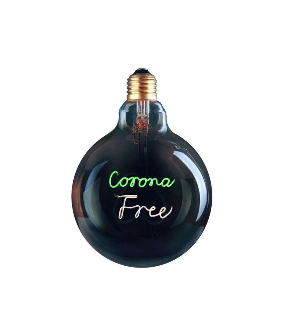 COLORS Corona Free from Halo Design er en helt ny serie med lyskilder. Selvfølgelig i bærekraftig versjon med LED . Denne lyskilden gir rommet en god stemningsbelysning, med det vakre designet i form av teksten og med frihet i tankene har du en lyskilde i særklasse. Med sine snaue 4 watt gir den 350 lumen, lyskilden er 12,5 centimeter i diameter , vi kan klart anbefale den til et stikkontaktsett, hvor den vil kunne danne rammen for å skape den koselige atmosfæren i hjemmet. Lyskilden er med klart glass og sprer lyset 360 grader, noe som gir den perfekte belysningen i rommet. Til tross for at den med sitt ekstremt lave forbruk på kun 4 watt kan dimbar , dvs. gjennom kontakten i veggen kan du dimme den i 3-trinn, 1 trinn 100 % lys, 2. trinn reduseres lyset til 50 %. 3 går styrken ned til 10%. da er det mye mulig for å kunne skape akkurat den atmosfæren i rommet du ønsker. Nå med "Corona Free"