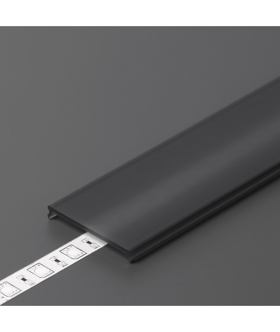 20m cover C9 CLICK - Rulle, sort er en diffuser fremstilt i PMMA, designet for å beskytte og skjule LED-profiler effektivt.