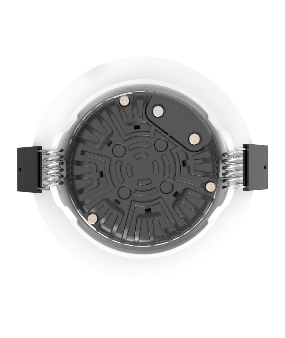RA92, Hull: Ø7,5 cm, Mål: Ø8,4 cm, svart reflektor, hvit kant, dimbar, 230V